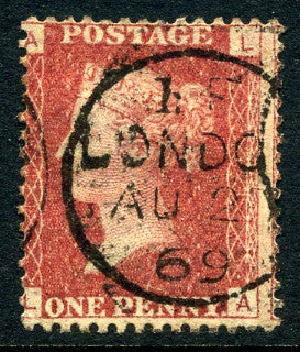 1858-79 1d Rose-red plate 113 lettered LA. A fine used example with "London" CDS dated 27th August, 1869.